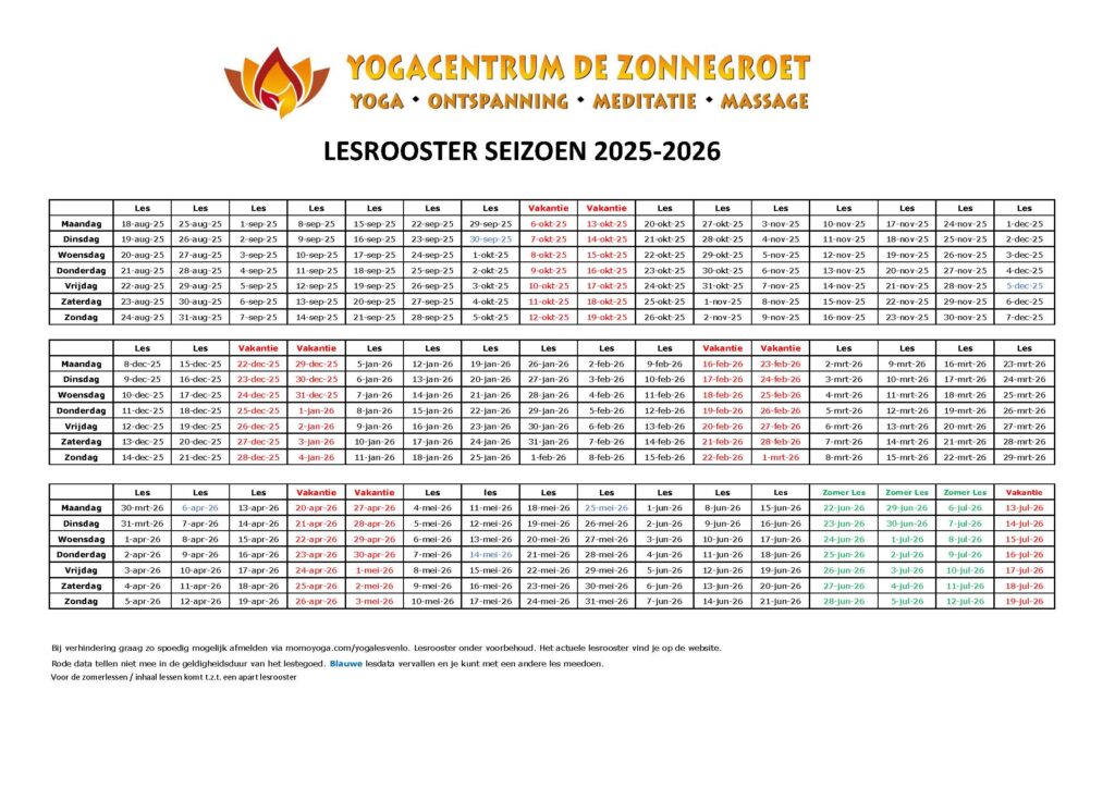 Vanaf maandag 18 augustus gaan alle reguliere lessen weer binnen van start. We kijken ernaar uit om jullie weer te ontvangen in onze fijne studio, met een rustige sfeer, airco en infraroodverwarming.